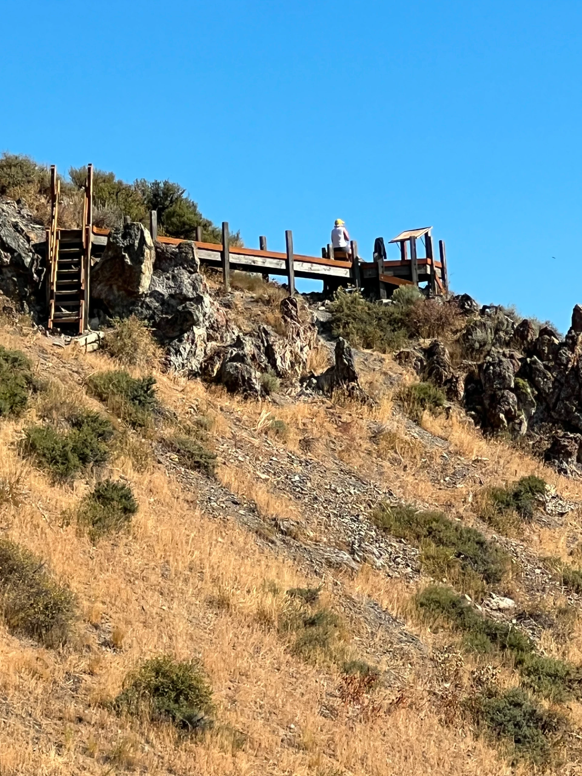As you approach the platform, you will see a trail to the left. Follow that trail and continue ascending along the open sagebrush-covered ridge.