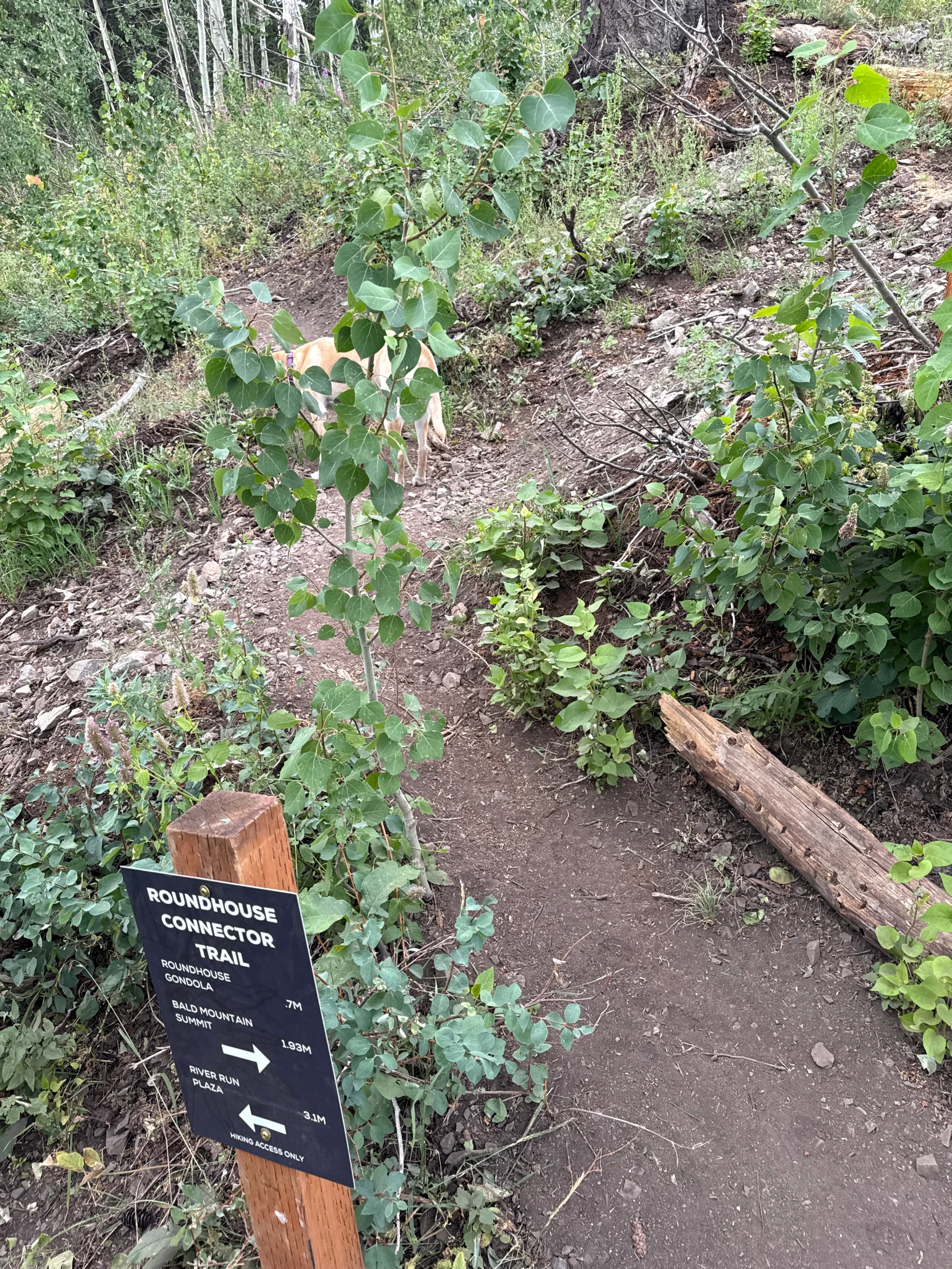 If you have a dog, you can backtrack to the top of the gondola and ride to the bottom. To do so, either follow the trail back down to the junction with Roundhouse Connector and take that flat ¾ mile trail to the gondola. Alternatively, you can cut off a little mileage by turning right at the junction with Roundhouse Lane and following the wide road to the gondola.