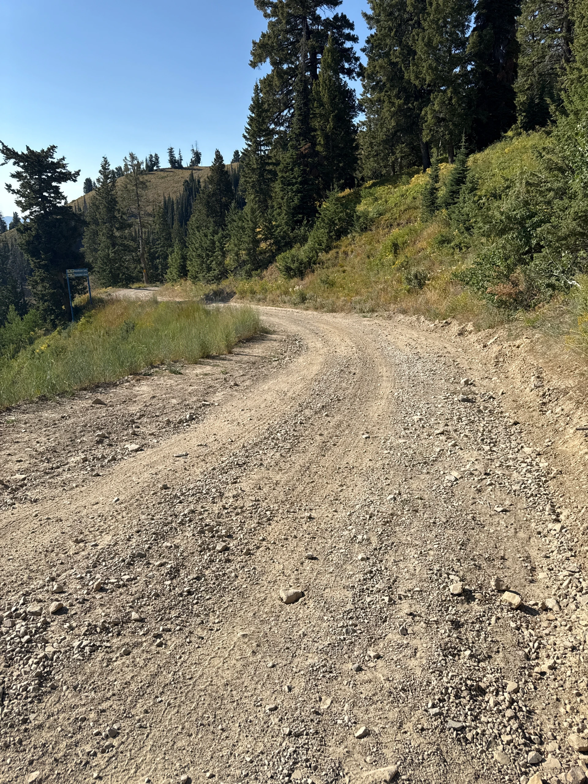 TheThe first quarter mile of the hike rolls through the woods alongside and above the Big Wood River. At .25 miles, the climb begins in earnest and at about .85 miles you make a sharp left hand turn at a sign marking the Bald Mountain Trail.