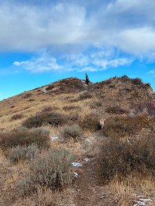 Keep climbing up and over camel-humps and at 1.25 miles, arrive at the hilltop destination. The views from here are magnificent, extending from Ohio Gulch to the north all the way south of the City of Bellevue.