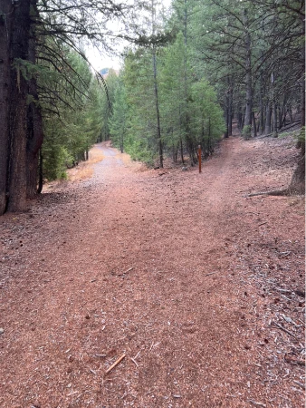 - At the signed multi-junction with Trail Creek Trailhead, etc, stay straight.