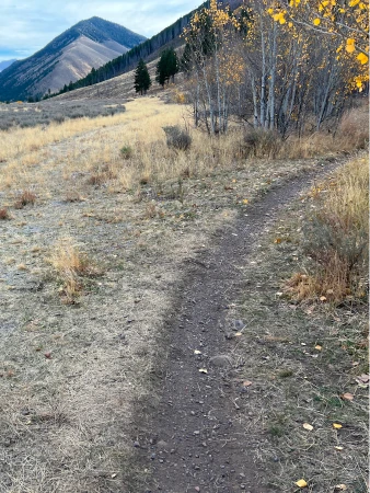 - At 1.25 miles, stay right and pass through a small grove of aspen trees;