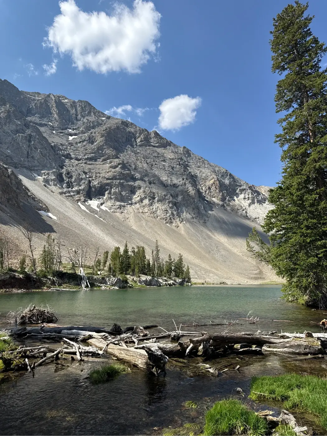 The second half of the hike to the lake is much easier to follow as it ascends through pine forest and mountain meadows awash in mid-summer wildflowers. The climb intensifies over the third mile, but levels out as you approach the turnaround. Your effort pays off as you come over a small rise and get your first look at North Fork Lake, its pale green water lapping up against the raw, wild Boulder Mountains. And best of all, you will very likely have this gem all to yourself.