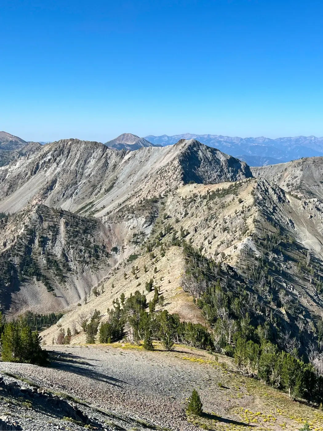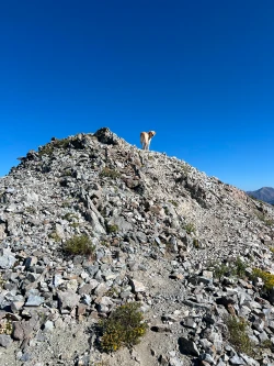 This section of the hike is far less travelled, probably because the climb is quite difficult. Follow the switchbacks and reach a flat area at 3.1 miles. The trail continues to your right with a brutal but short exposed climb to the destination, a knob of rocks that sits at 10,230 feet elevation.