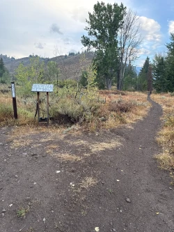 Take the right fork at the signed junction that marks the trailhead – the left fork takes you to the Saddle trail. Quickly cross a wooden bridge and enter an open, grassy gulch. The trail rises very gradually with only a few very short spurts of climb. Willows line the left side of the trail, though the creek can run dry for the first half mile of the hike.