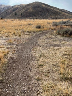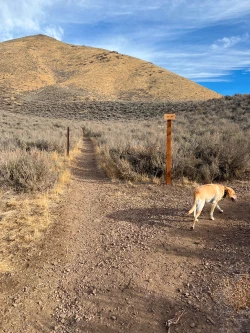 If you are looking for a flat hike that offers some mileage, this is a solid option. The four-mile loop, bracketed by sage-covered hills, encircles Quigley Valley. Snow tends to melt quickly on the north side of the valley, so it is a good early/late season option. Quigley Pond sits at the halfway point of the hike, offering dogs a chance to play.