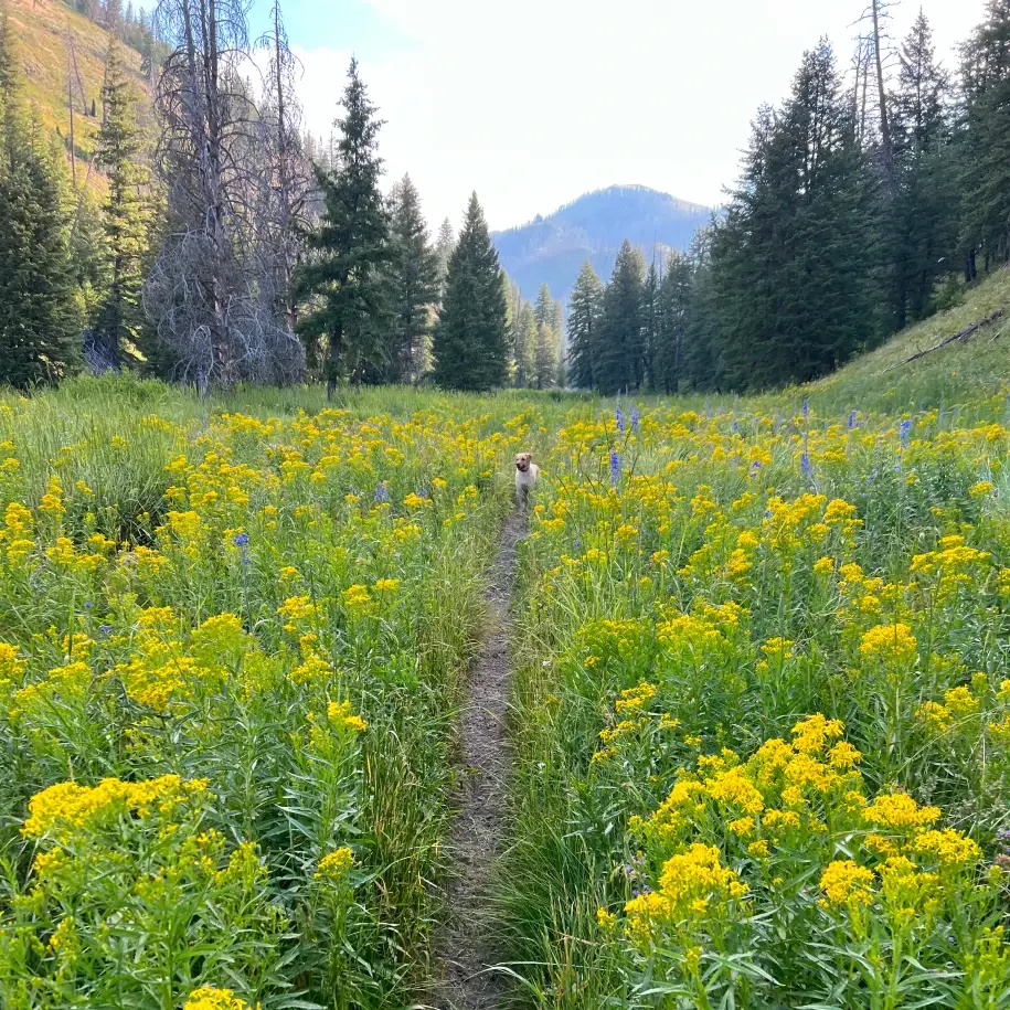 Rooks Creek is a pleasant stroll through a small, secluded gully. The sunny hike crosses a series of meadows which are filled with wildflowers during the mid-summer. One meadow just past the mile mark features a series of old mining structures and is an excellent destination for a shorter hike. Our route ends at a peaceful junction with the creek – a nice spot for a picnic. The trail continues another 2.5 miles from that point and, after a very difficult climb through charred forest, connects with Osberg Ridgeline trail.