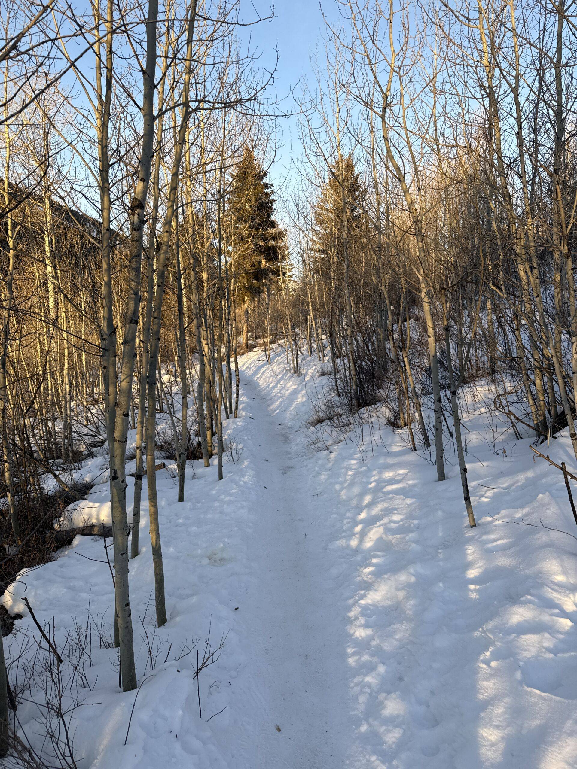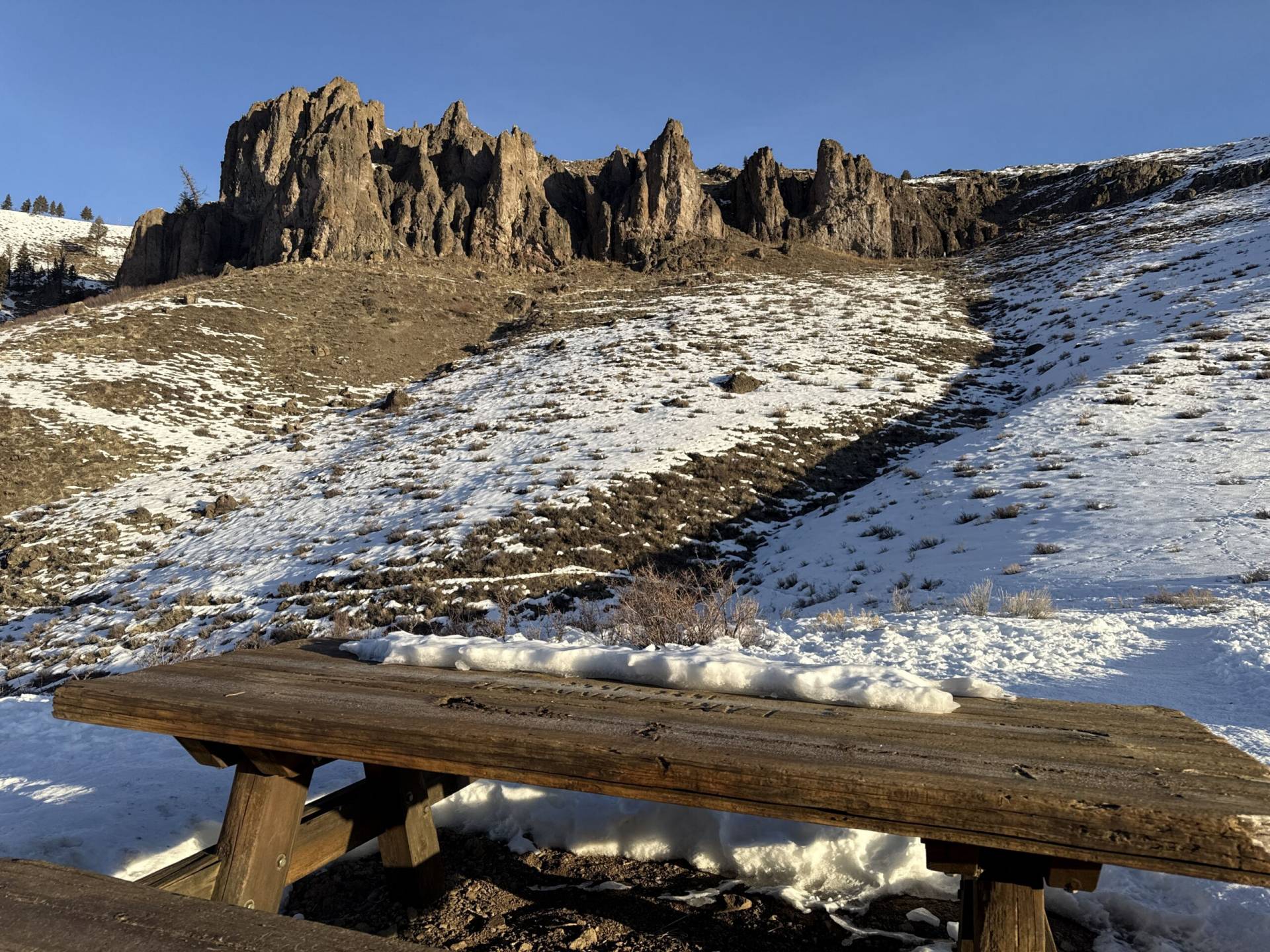 The Sunnyside–Old Adam’s Gulch Road loop is an excellent option for hikers seeking a compact, easy-to-follow route with just enough elevation to get the heart pumping. Spikes are highly recommended in low-snow years as icy sections are common. Muddy conditions can also develop, particularly when temperatures hover near 30 degrees, so it’s best to avoid the route during freeze–thaw cycles.