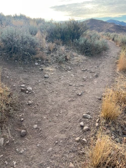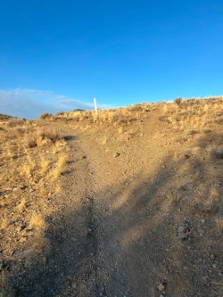 At about the 1.35-mile mark, come to the first of three sweeping turns that follow the contours of the valleys as they cut through the hills. Where the turns tighten, there is often water running down the drainage. It is not recommended to let your dog drink this water, as it is runoff from the White Clouds golf course which is built into the hills above.